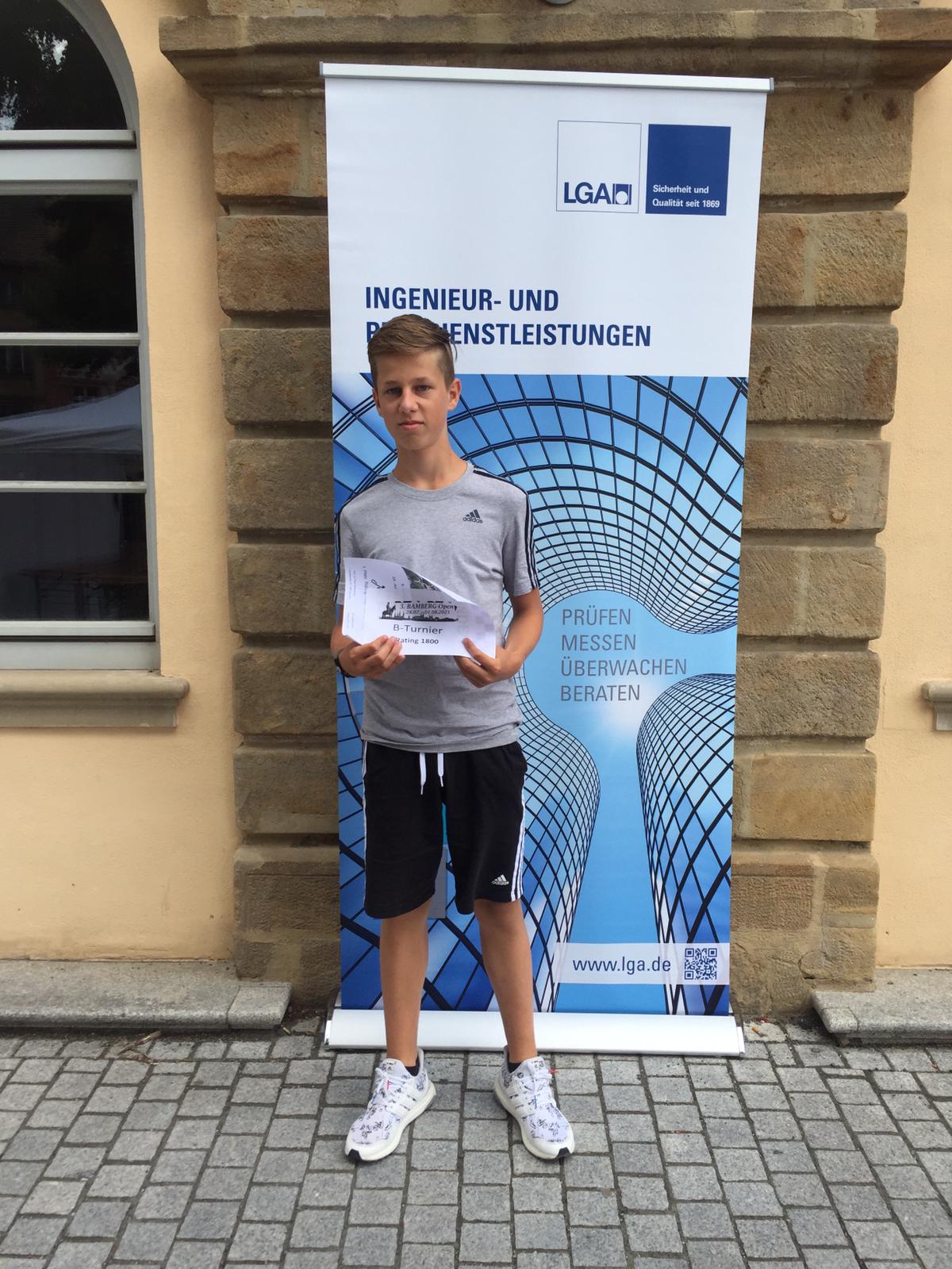 Unser U16 Spitzenspieler Jan Bieberle hat einen starken 8. Platz beim 3. Bamberg Open 2021 im B-Turnier erreicht. Bis zur letzten Runde hatte er, ohne eine einzige Niederlage einzufahren, beste Chancen auf eine Top 3 Platzierung. Er verlor jedoch gegen den späteren Turniernsieger und Jugendspieler Artur Steinhauer aus Regensburg in einer hart umkämpften Schlussrunde. Als Bester 1601-1800er Rating kann sich Jan über ein Preisgeld von 100€ und neue DWZ von über 1700 freuen.