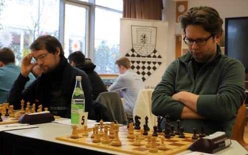 Der Gegner von Andreas Kellmann wies eine geschwächte Stellung während des gesamten Spieles auf und gab dann im Endspiel einen zweiten Bauern drein, so dass es Kellmann gelang, die Kontrolle über seine Partie zu behalten. Obgleich er konstant verteidigen musste, gelang es Alexander Mönius zugleich einen Angriff auf die Königsstellung des Aschaffenburgers Tim Riedel zu starten und sich so eine Atempause zu erringen. Da aufgrund der Komplexität seiner Stellung auf beiden Seiten Vorteile nicht optimal genutzt werden konnten, kam es auch hier zum Remis.