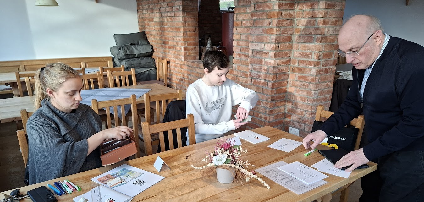 Links: Ingo Thorn beim Rollenspiel – Rechts: Peter Przybylski beim Kassieren der Lehrgangsgebühren.