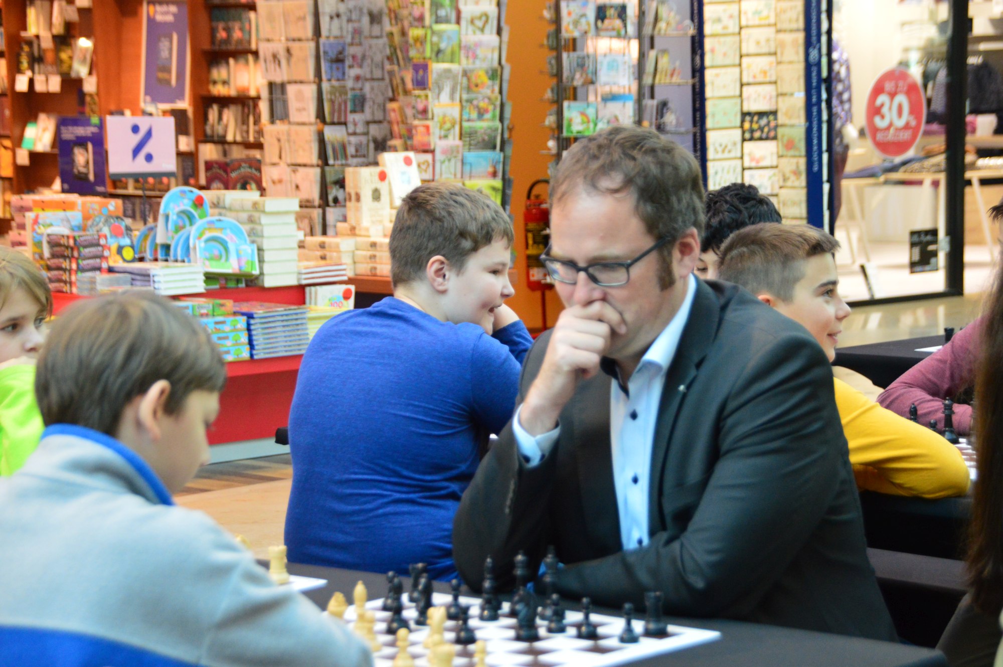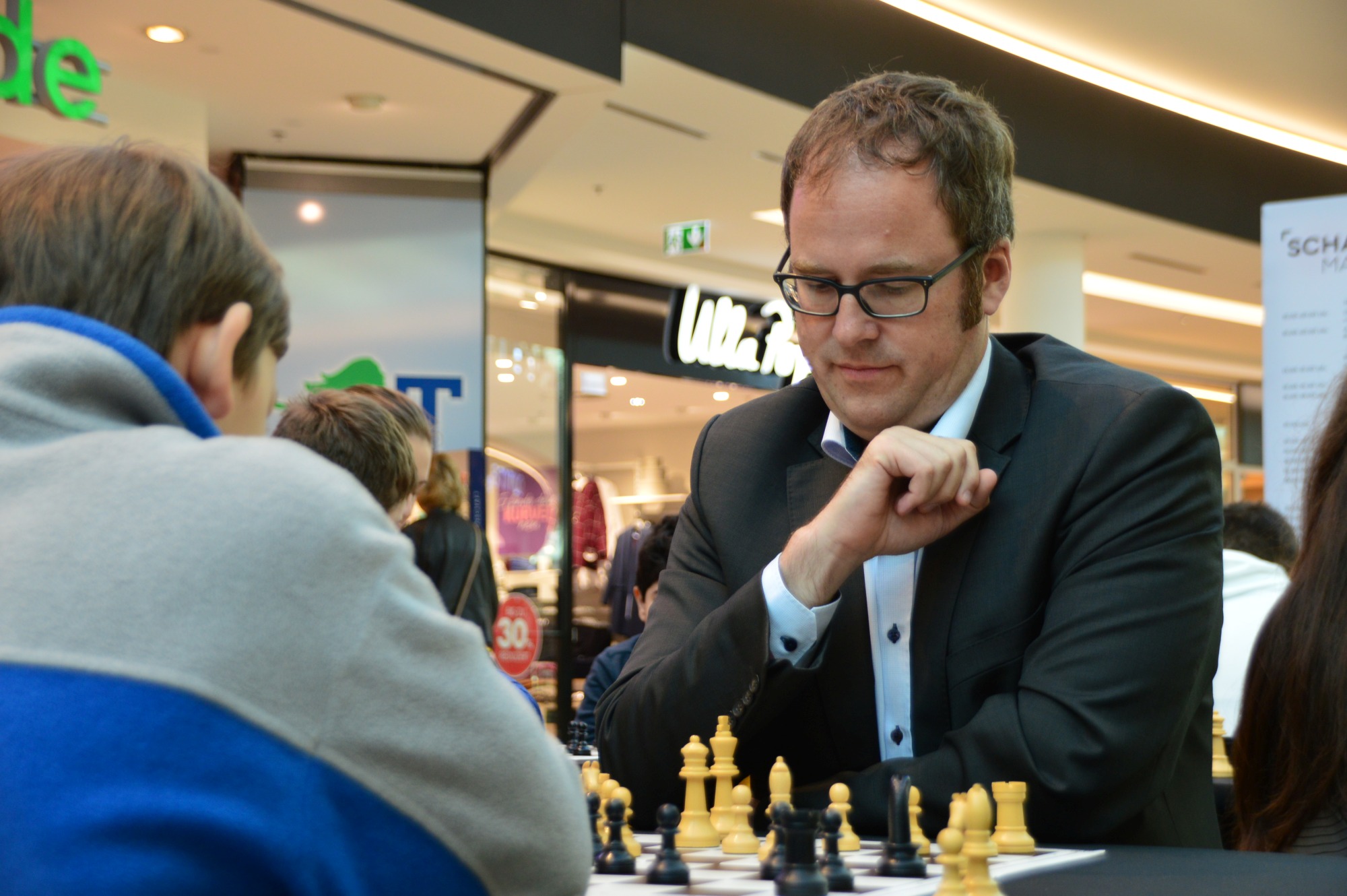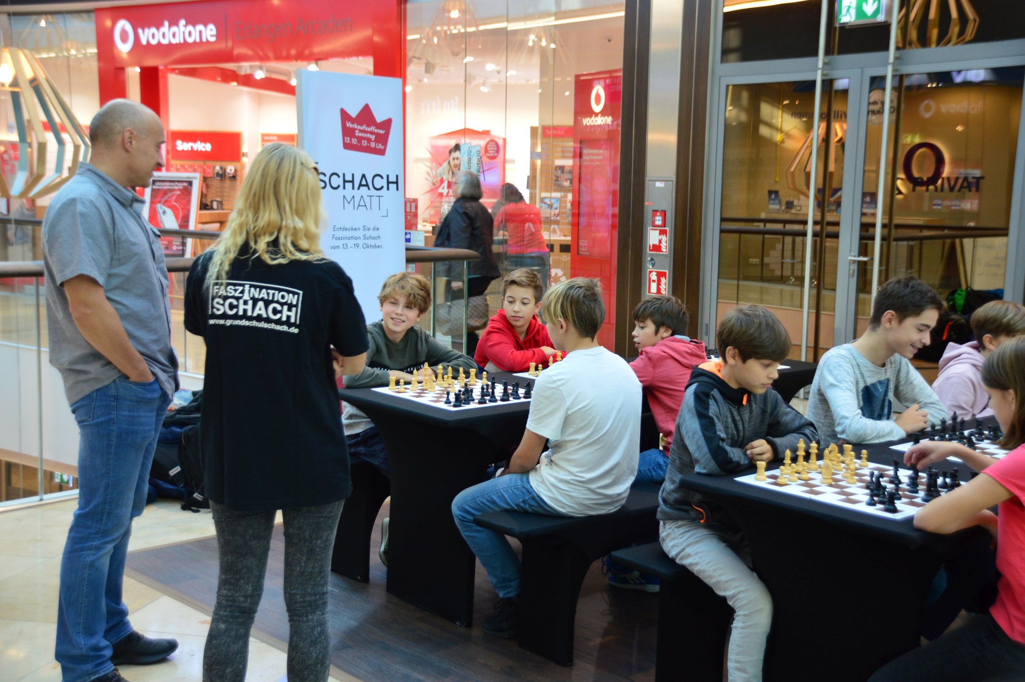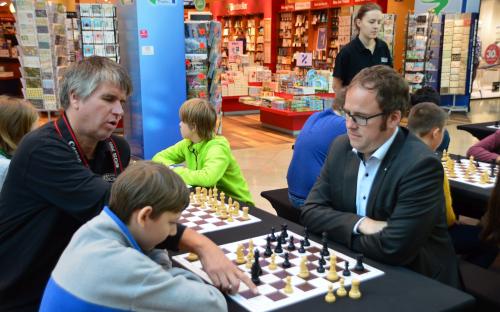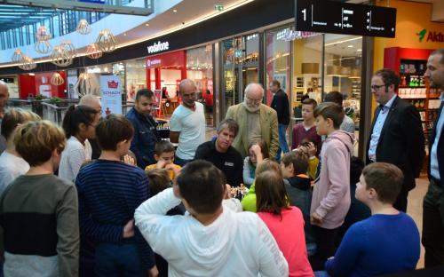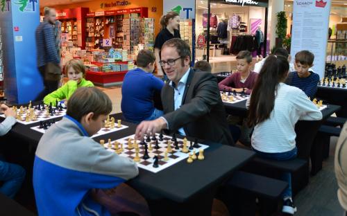 GM Sebastian Siebrecht ist mit Faszination Schach noch bis Samstag in Erlangen. Wir waren am Montag früh dort, während eine Erlanger Schulklasse Schachunterricht vom Großmeister bekam. Doch seht selbst in der Bildergallerie.