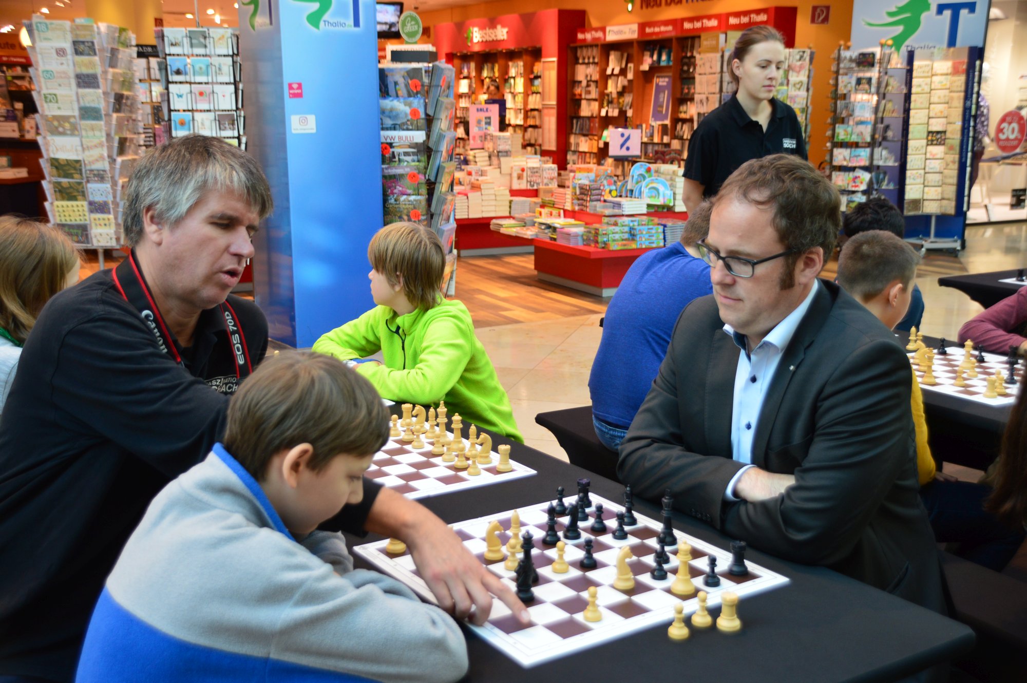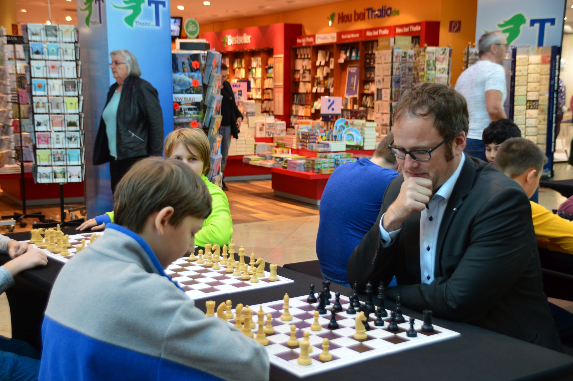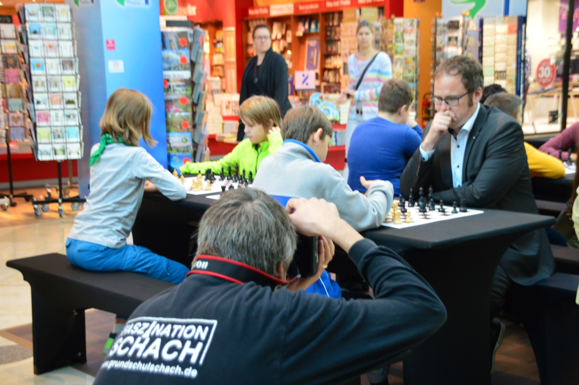 GM Sebastian Siebrecht ist mit Faszination Schach noch bis Samstag in Erlangen. Wir waren am Montag früh dort, während eine Erlanger Schulklasse Schachunterricht vom Großmeister bekam. Doch seht selbst in der Bildergallerie.