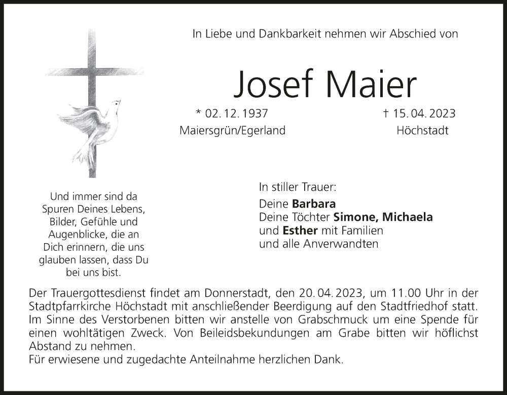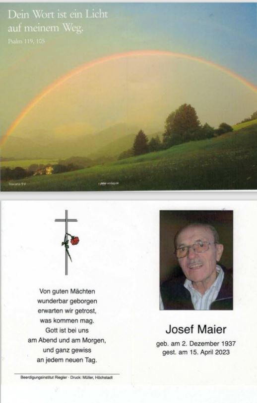 Überraschend erreichte uns die Nachricht vom Tod unseres Schachfreundes und Ehrenmitgliedes Josef Maier. Josef verstarb nach kurzer schwerer Krankheit am Samstag, den 15.04.2023 im Alter von 85 Jahren.