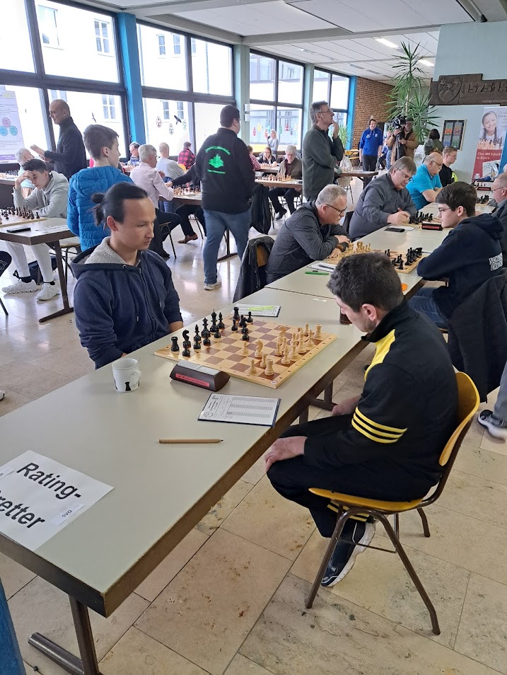 13:15 Uhr 32 Turnierpartien an 32 Brettern, die nach verschiedenen Kategorien (Allgemeine Bretter, Damenbretter, Seniorenbretter, Rating Bretter, Jugendbretter, Ehrenbretter) aufgeteilt waren. Die Bedenkzeit war „Fischer kurz“, also 90 Minuten für die Partie sowie eine Zeitgutschrift von 30 Sekunden pro Zug.