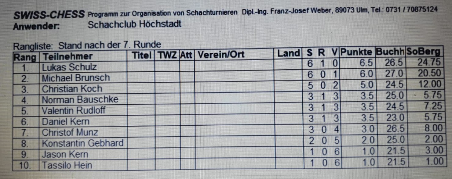 Diesmal bewarben sich 10 Spieler um die Punkte. Der Favorit FM Lukas Schulz konnte auch das 2. Turnier klar gewinnen. Er gab nur ein Remis gegen Valentin in der letzten Runde ab.