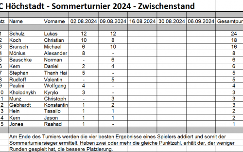 Am Freitag, 09.08.2024 wurde das Sommerturniers 2024 mit dem 2. Turnier fortgesetzt.