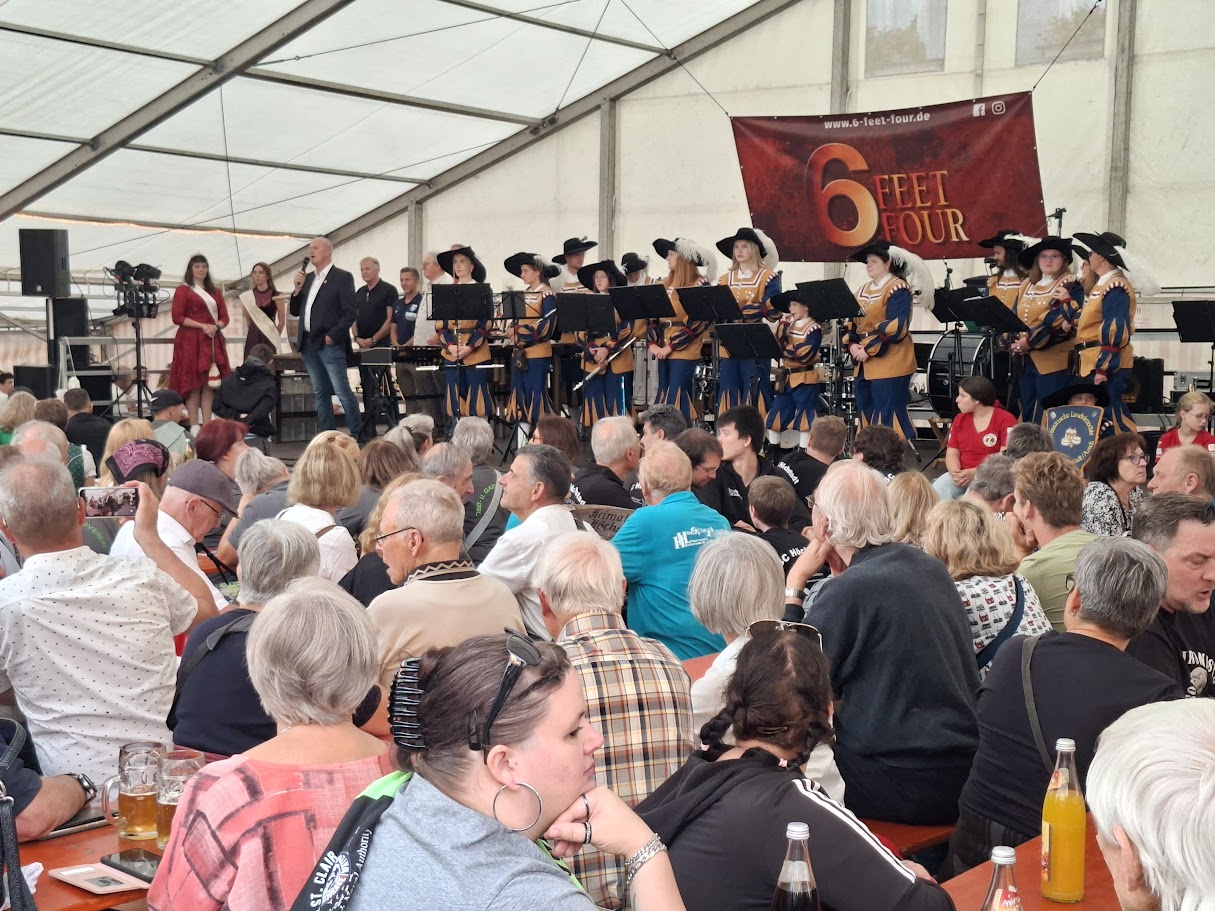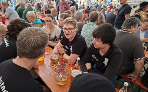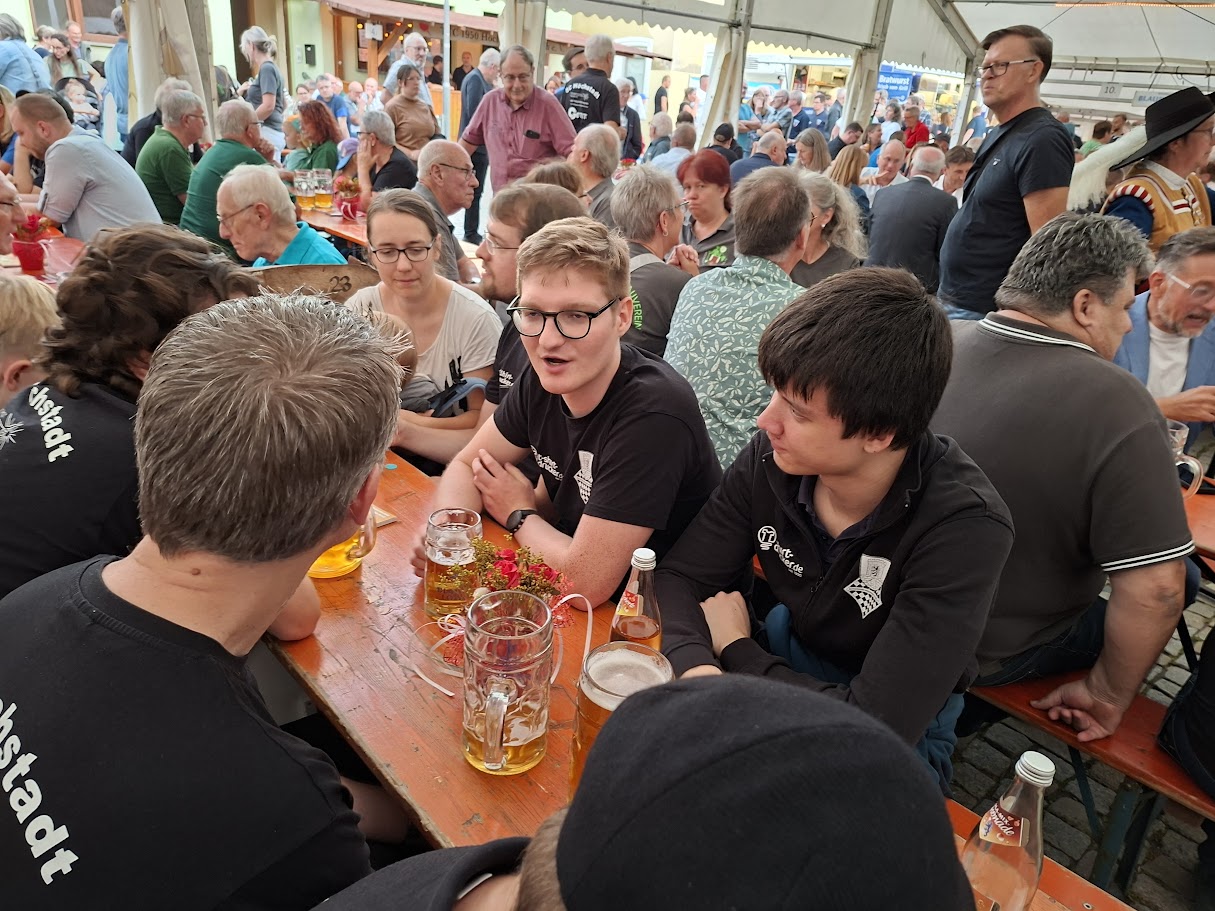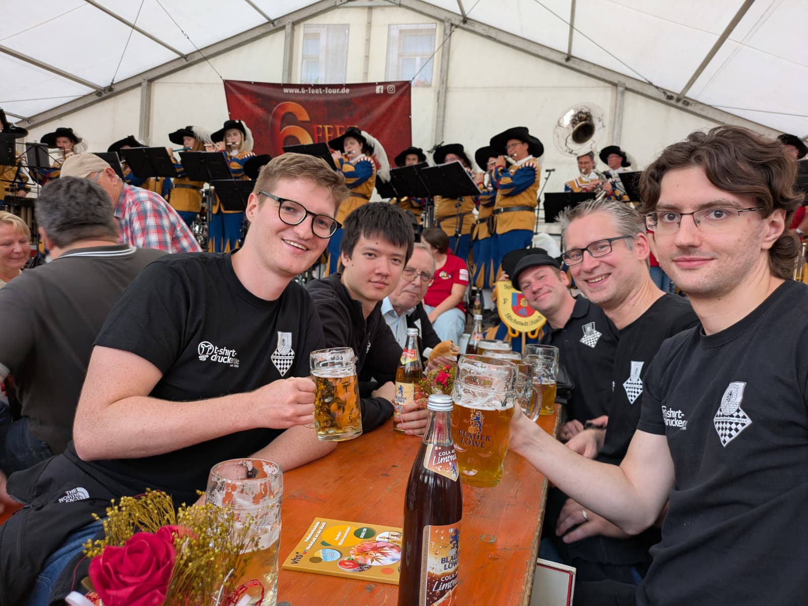 Dort erfolgten die Begrüßung und der Bieranstich. Ein Schlag, ein Fest, ein Abschied – Bürgermeister Gerald Brehm zelebrierte ein letztes Altstadtfest. Auch der Schachclub war mit einer Delegation dabei und genoss die erste Frei Maß vom Anstich. Der 1. Vorsitzende Christian Koch spendierte jedem Teilnehmer zusätzlich ein Getränk.
